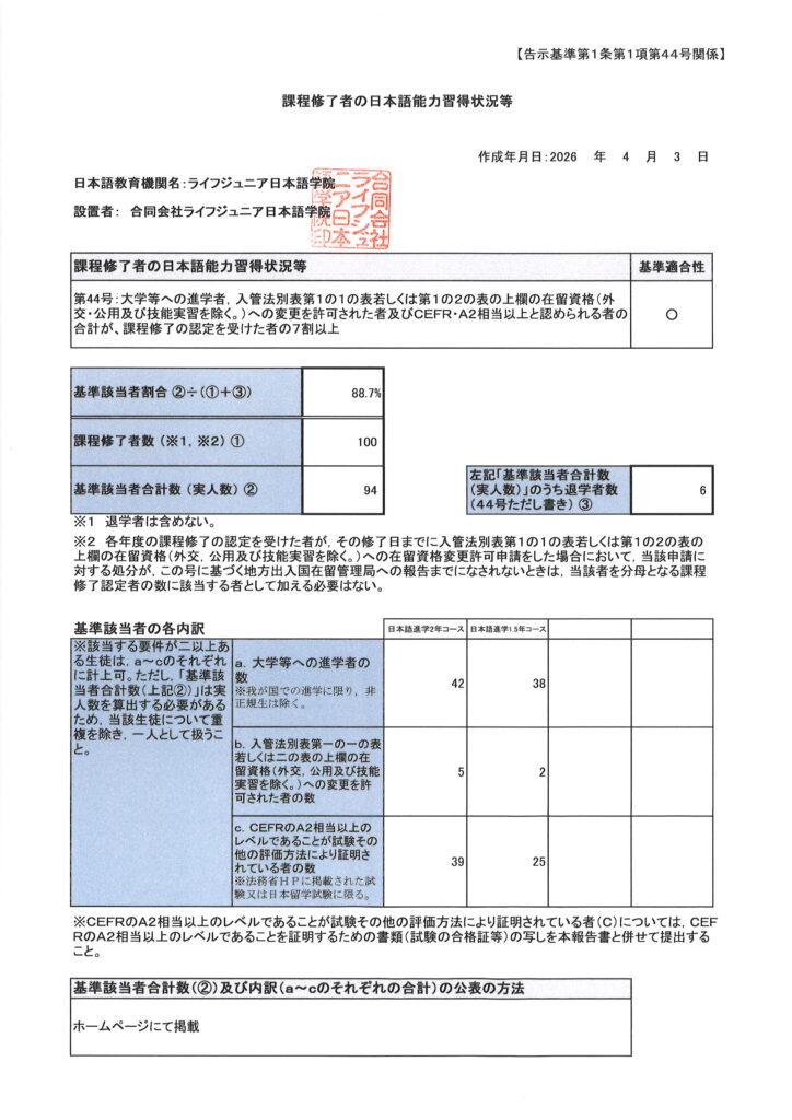 2024 財政年度完成的學生日語習得狀況(R6)